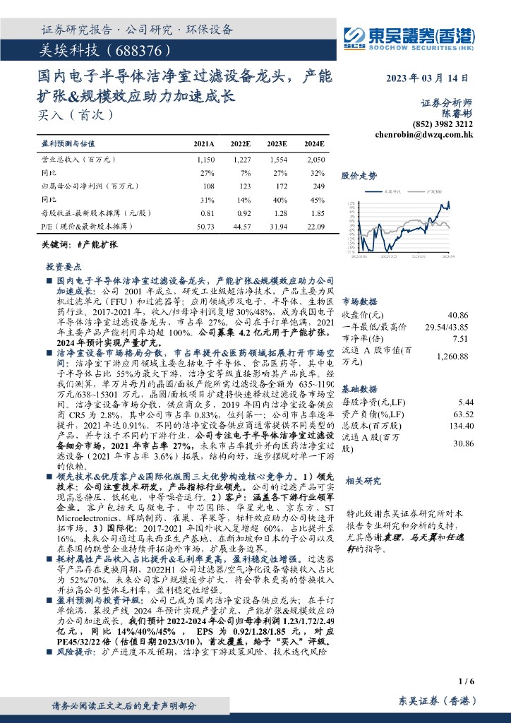 东吴证券国际经纪:美埃科技(688376)-国内电子半导体洁净室过滤设备龙头,产能扩张&规模效应助力加速成长.pdf
