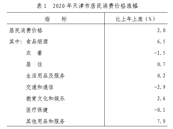 天津市2020年国民经济和社会发展统计公报