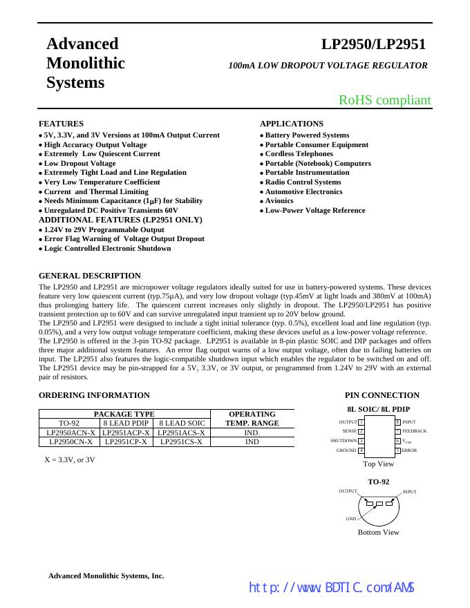LP2950 LP2951 100mA LOW DROPOUT VOLTAGE REGULATOR 数据手册.pdf