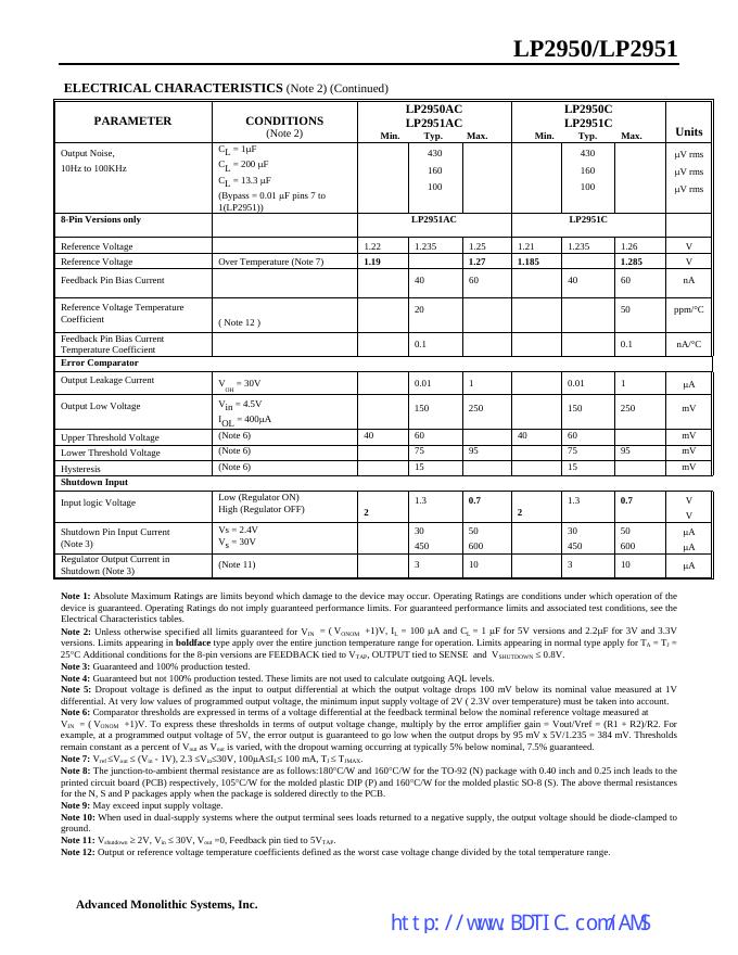 National semiconductor LP2950/LP2951 Series of Adjustable Micropower Voltage Regulators 说明书