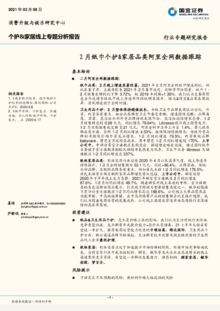 国金证券:个护&家居线上专题分析报告:2月纸巾个护&家居品类阿里全网数据跟踪.pdf