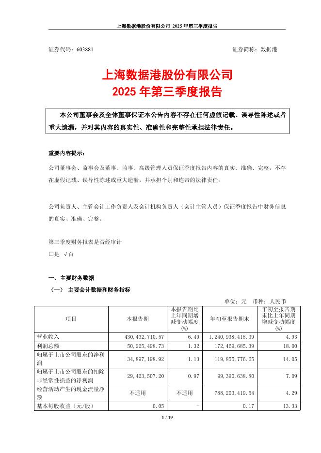 603881-数据港:上海数据港股份有限公司2025年第三季度报告.pdf