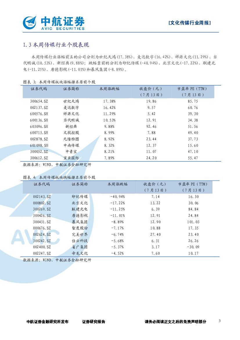 中航证券:文化传媒行业周报:中报预告陆续披露,关注细分优质龙头.pdf