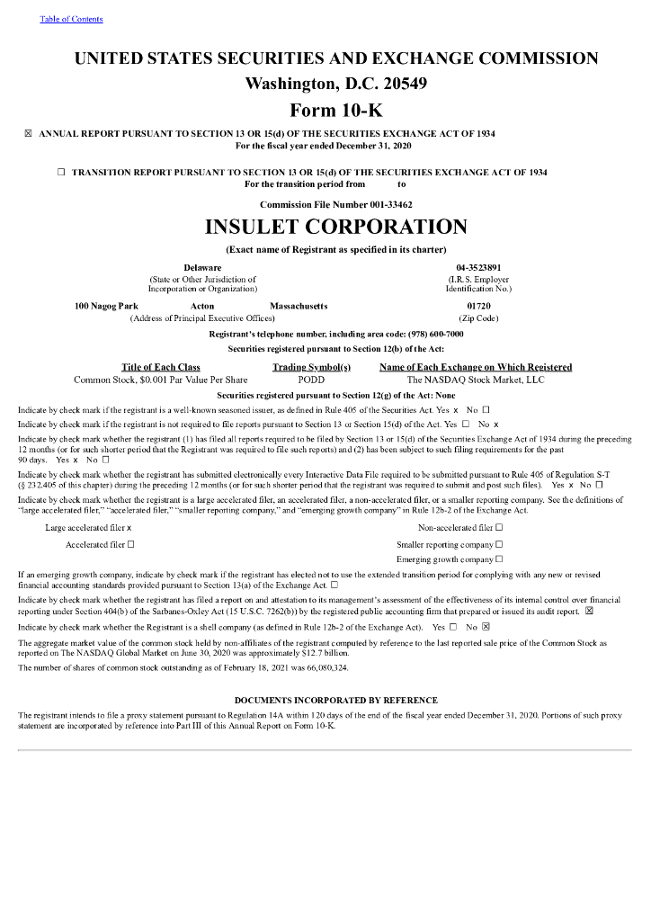 Insulet Corporation(PODD)2020财年年度报告(英文版).pdf