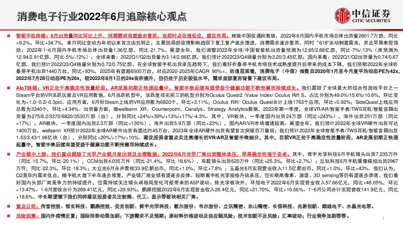 中信证券:消费电子行业深度追踪系列第2期(2022年6月):需求有望回暖,估值低位,建议布局.pdf