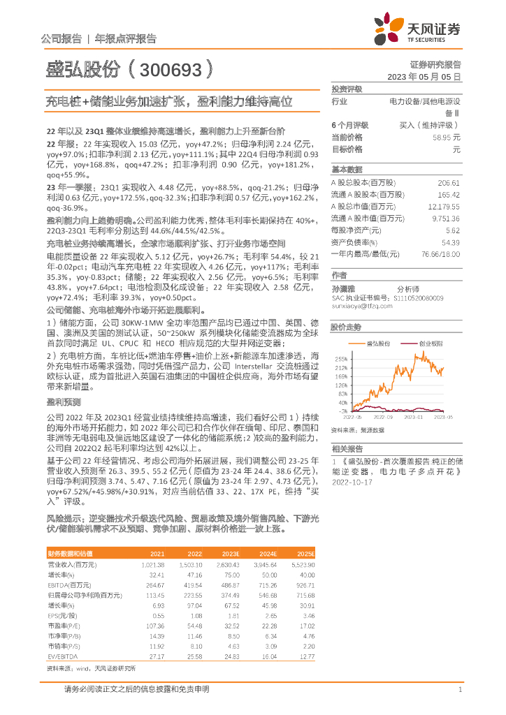 天风证券:盛弘股份(300693)-充电桩+储能业务加速扩张,盈利能力维持高位.pdf