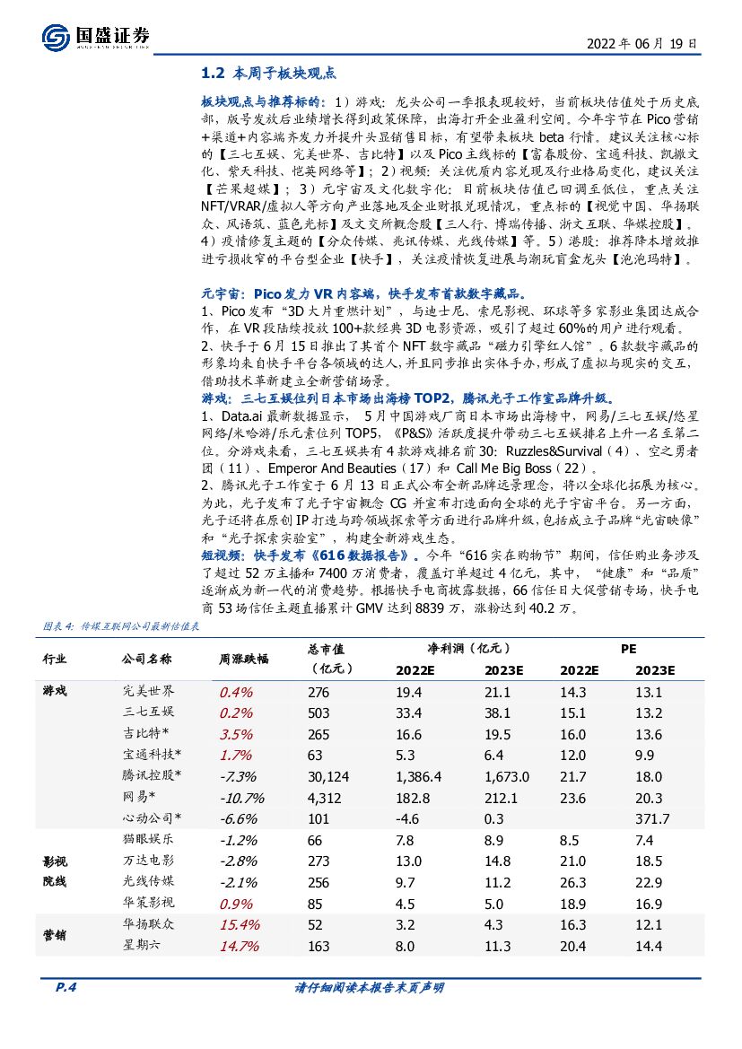 国盛证券:传媒行业周报:快手发布首款数字藏品,腾讯光子工作室宣布升级.pdf