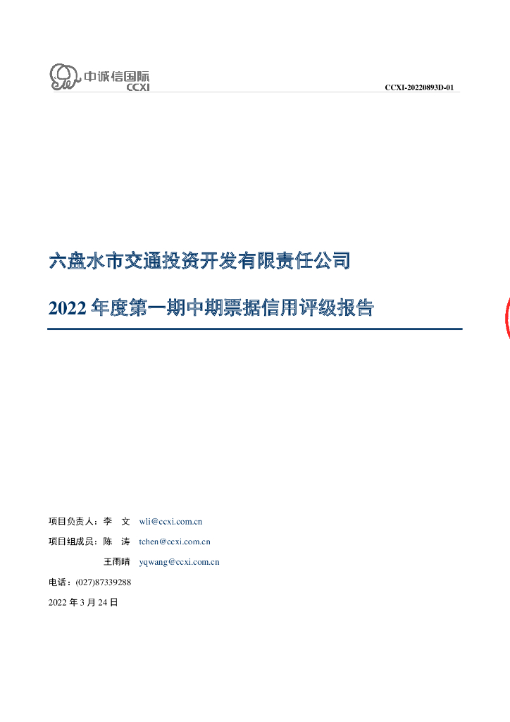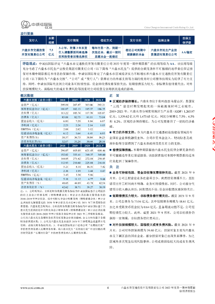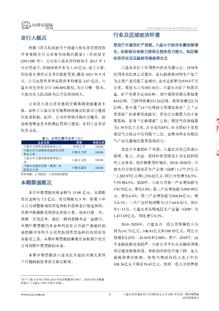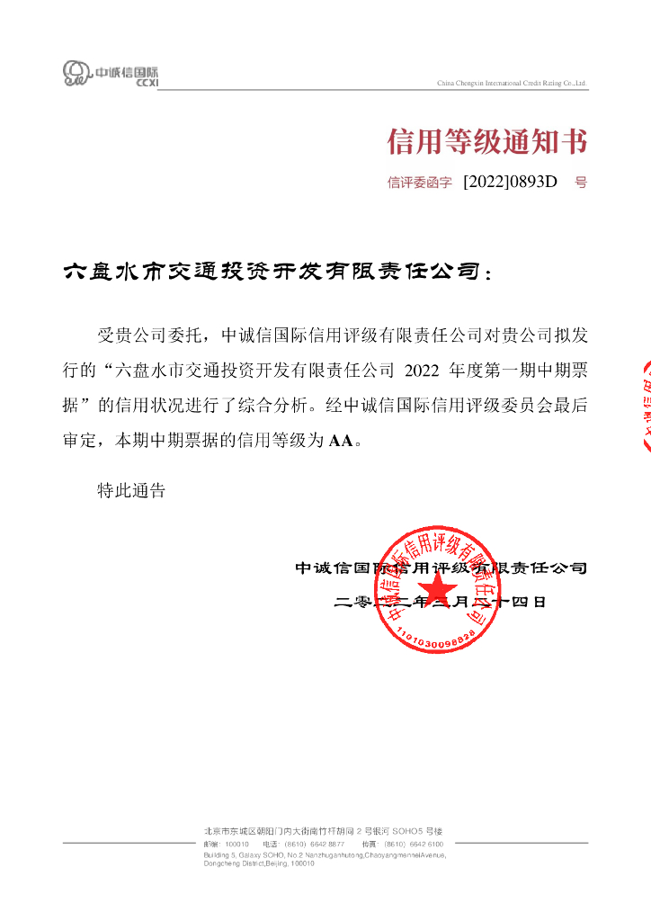 中诚信:六盘水市交通投资开发有限责任公司2022年度第一期中期票据信用评级报告.pdf