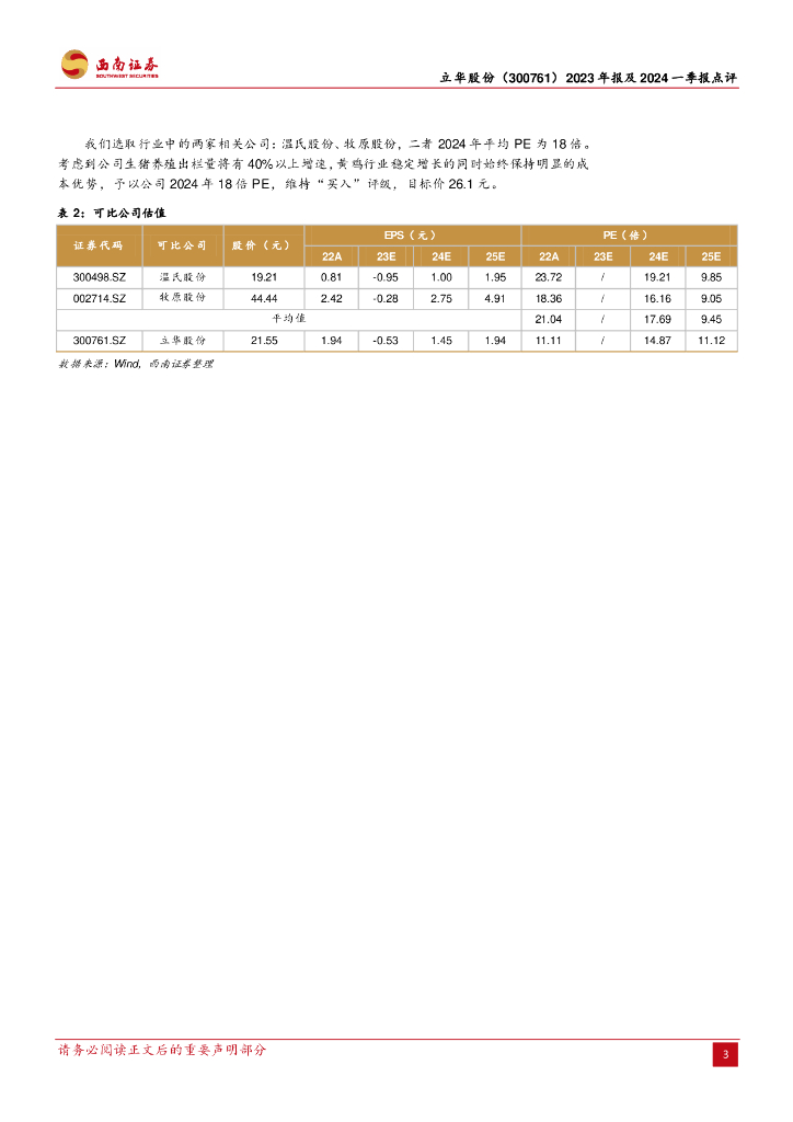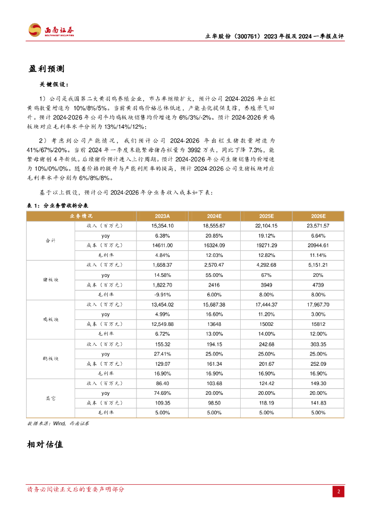 西南证券:立华股份(300761)-养殖成绩持续改善,2024Q1扭亏为盈.pdf