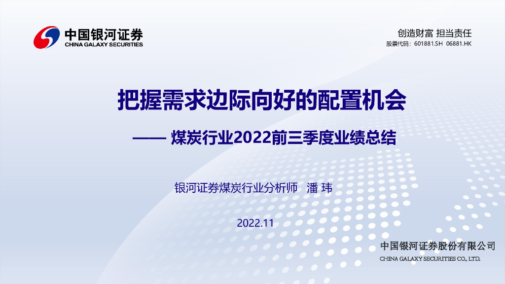 中国银河:煤炭行业2022前三季度业绩总结:把握需求边际向好的配置机会.pdf