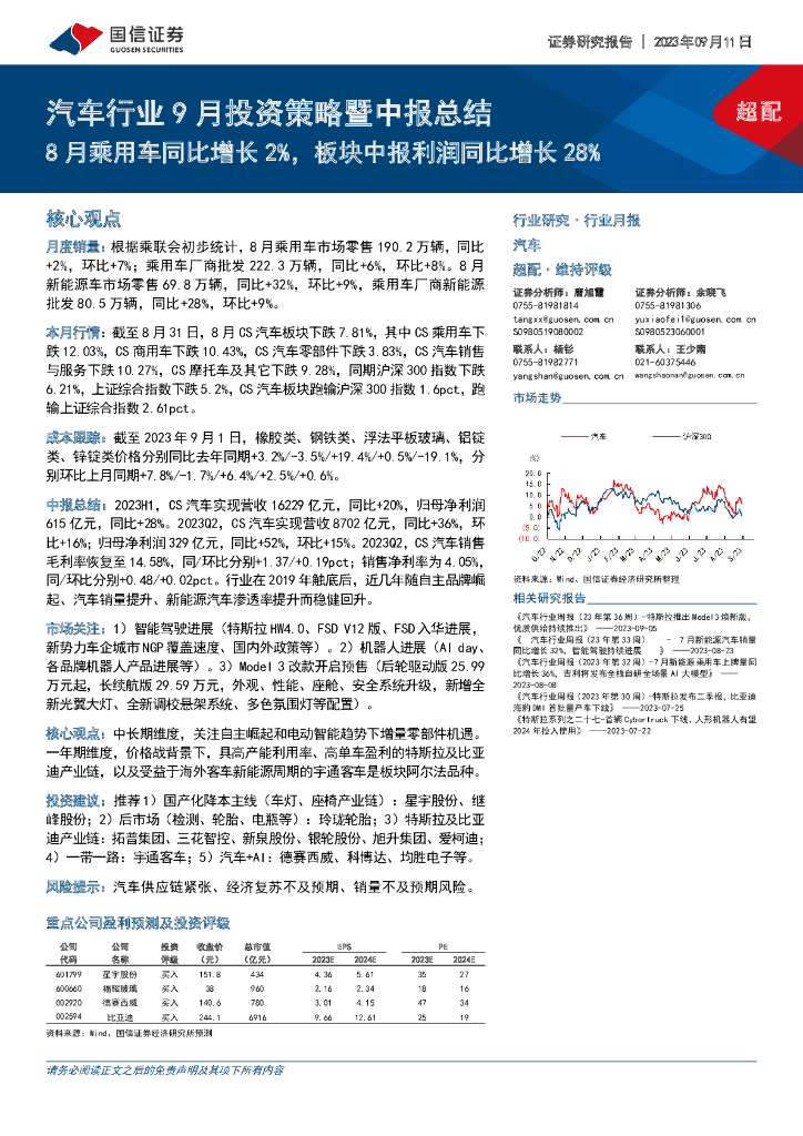 国信证券:汽车行业9月投资策略暨中报总结:8月乘用车同比增长2%,板块中报利润同比增长28%.pdf