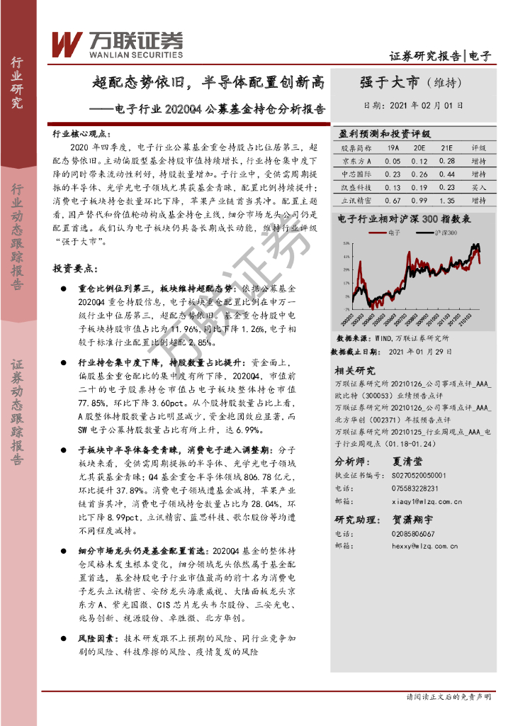 万联证券:电子行业2020Q4公募基金持仓分析报告:超配态势依旧,半导体配置创新高.pdf