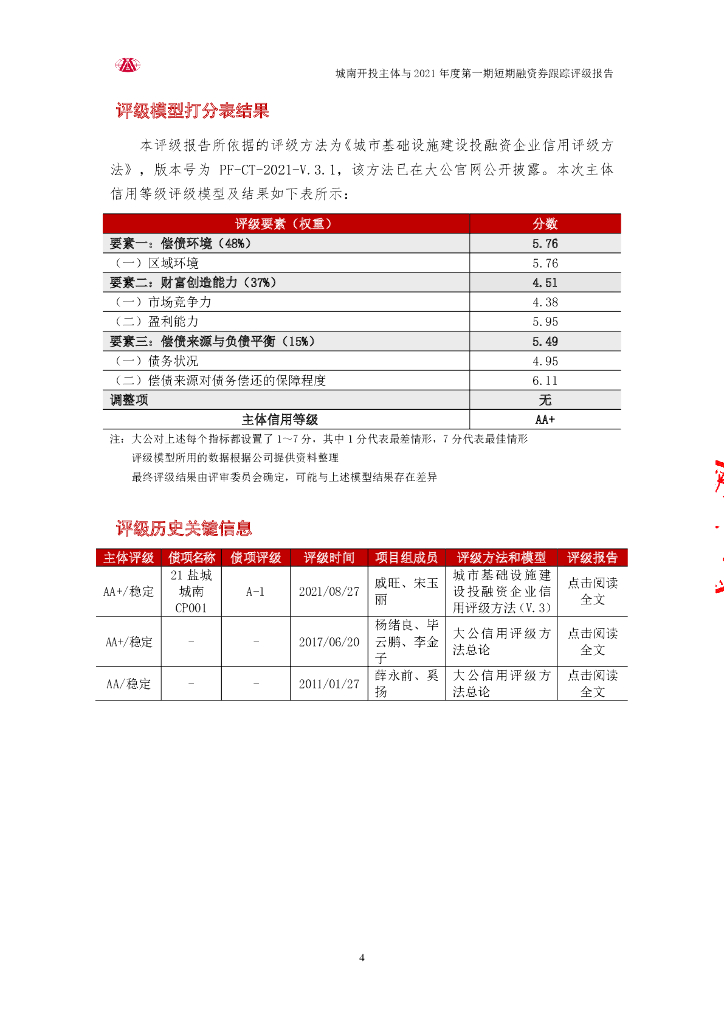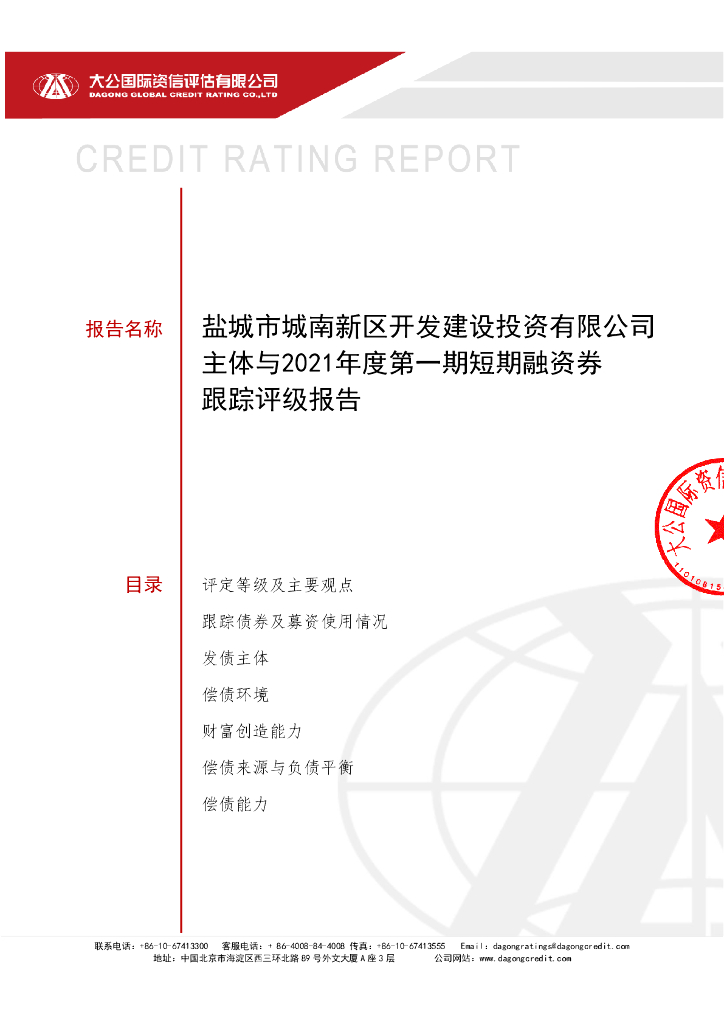 大公:盐城市城南新区开发建设投资有限公司主体与2021年度第一期短期融资券跟踪评级报告.pdf