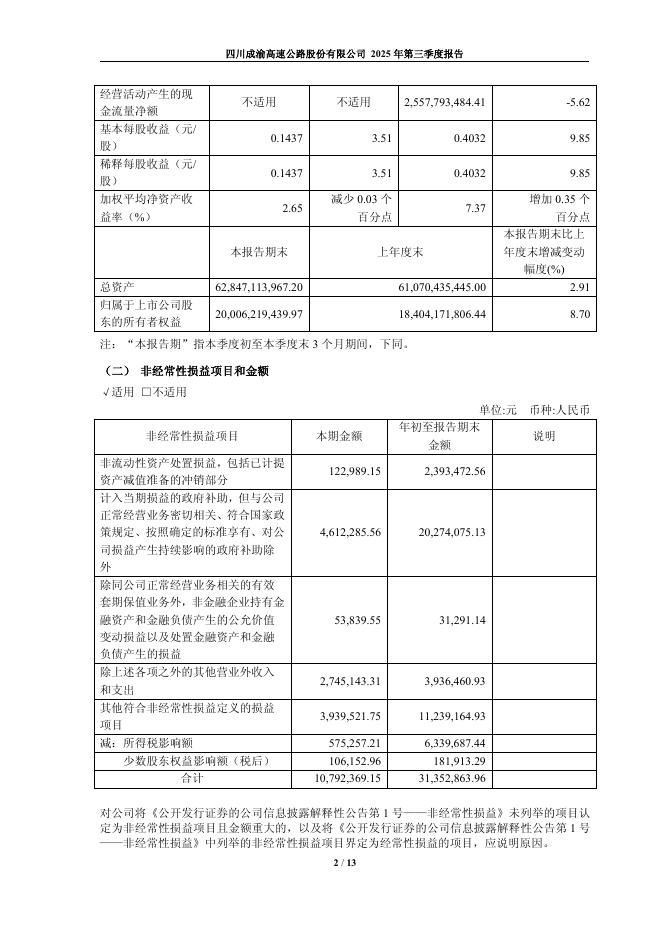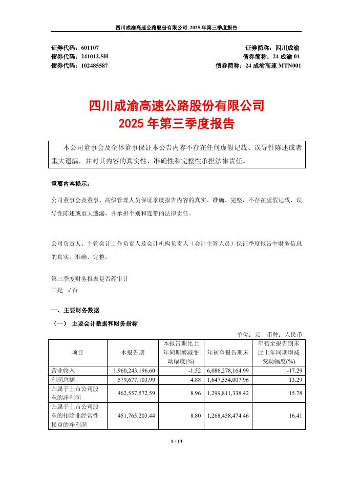 601107-四川成渝:四川成渝2025年三季度报告.pdf