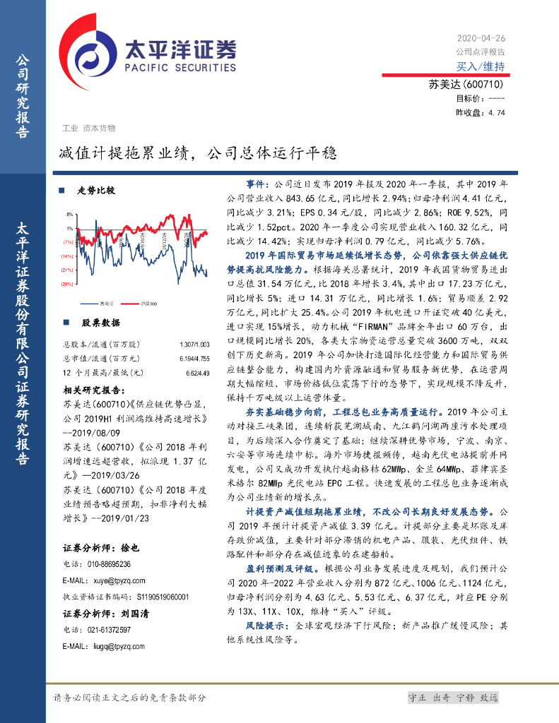 太平洋证券:苏美达(600710)-减值计提拖累业绩,公司总体运行平稳.pdf