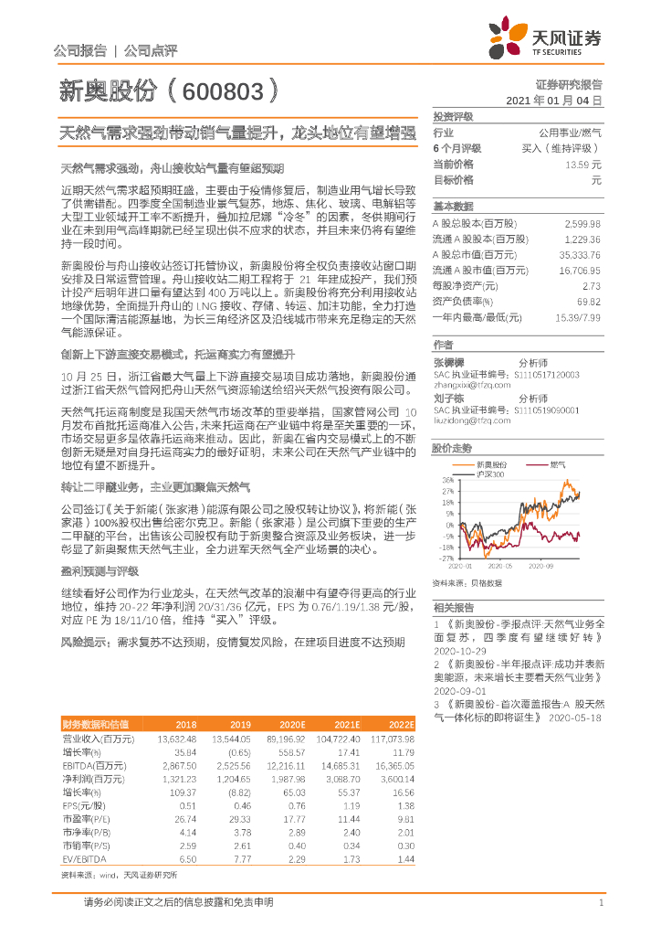 天风证券:新奥股份(600803)-天然气需求强劲带动销气量提升,龙头地位有望增强.pdf