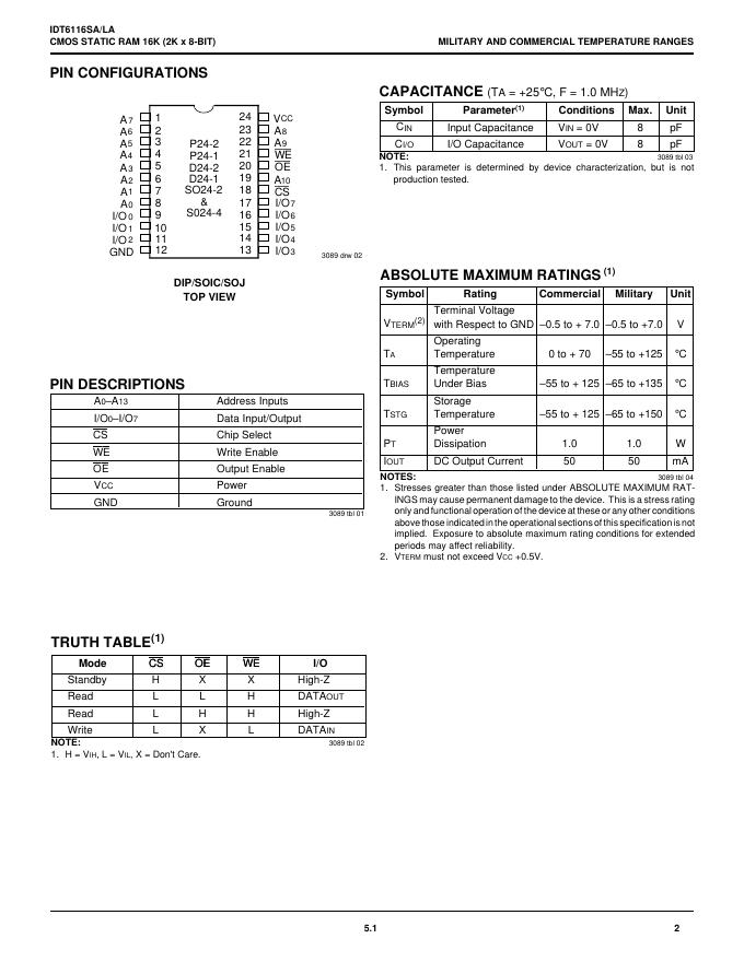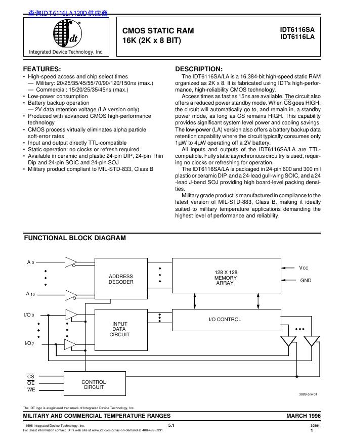 IDT IDT6116SA/IDT6116LA 数据手册.pdf