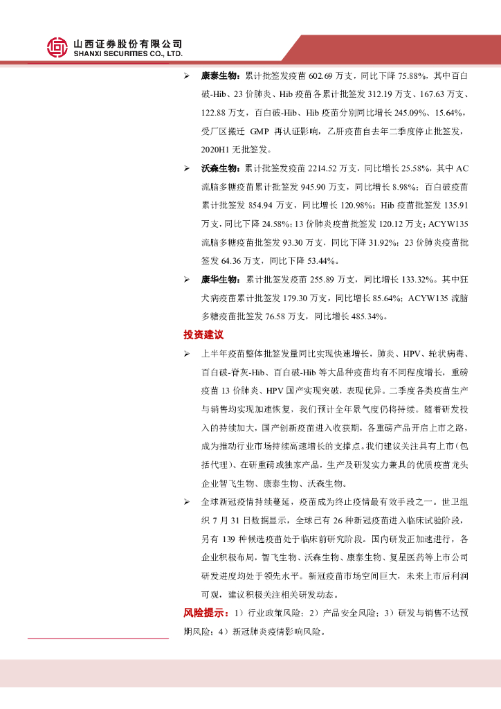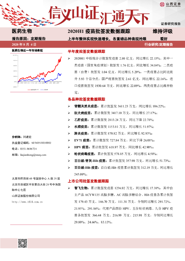 山西证券:医药生物2020H1疫苗批签发数据跟踪:上半年整体实现快速增长,各重磅品种表现抢眼.pdf