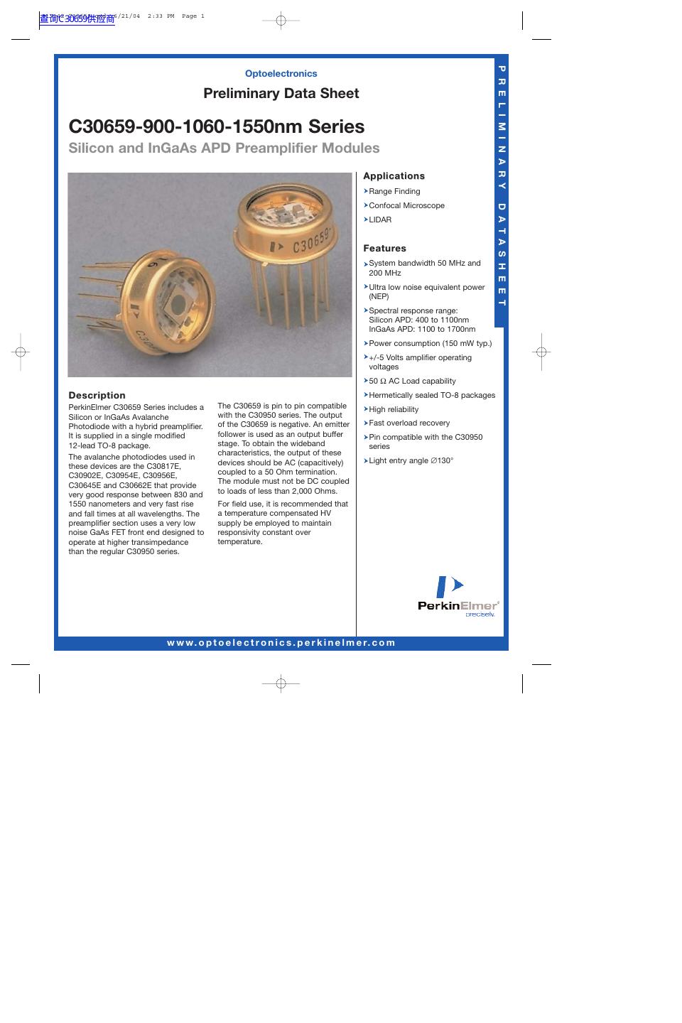 PerkinElmer C30659-900-1060-1550nm Series 数据手册.pdf