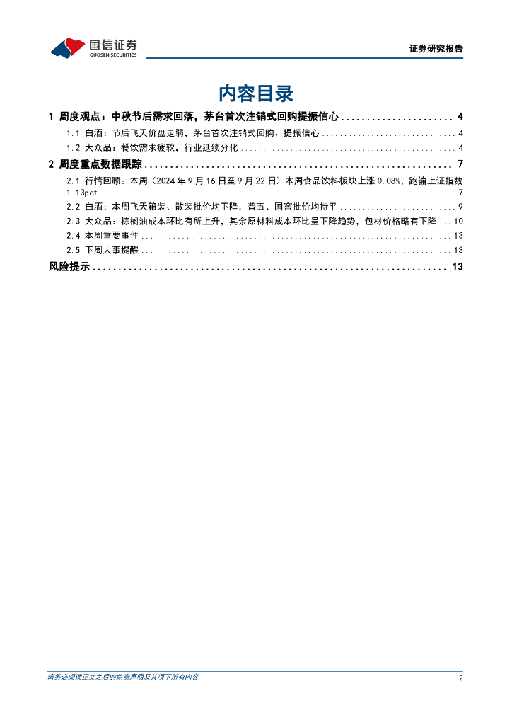 国信证券:食品饮料行业周报(24年第39周):中秋节后需求回落,茅台首次注销式回购提振信心.pdf