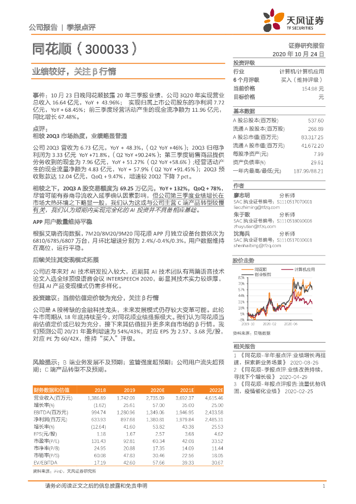 天风证券:同花顺(300033)-业绩较好,关注β行情.pdf