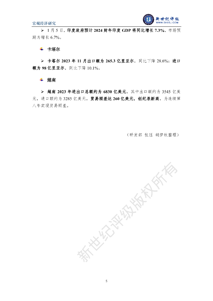 新世纪评级:全球食品价格指数下降 中国服务贸易持续增长——全球宏观经济周报(2023/12/30-2024/1/5).pdf