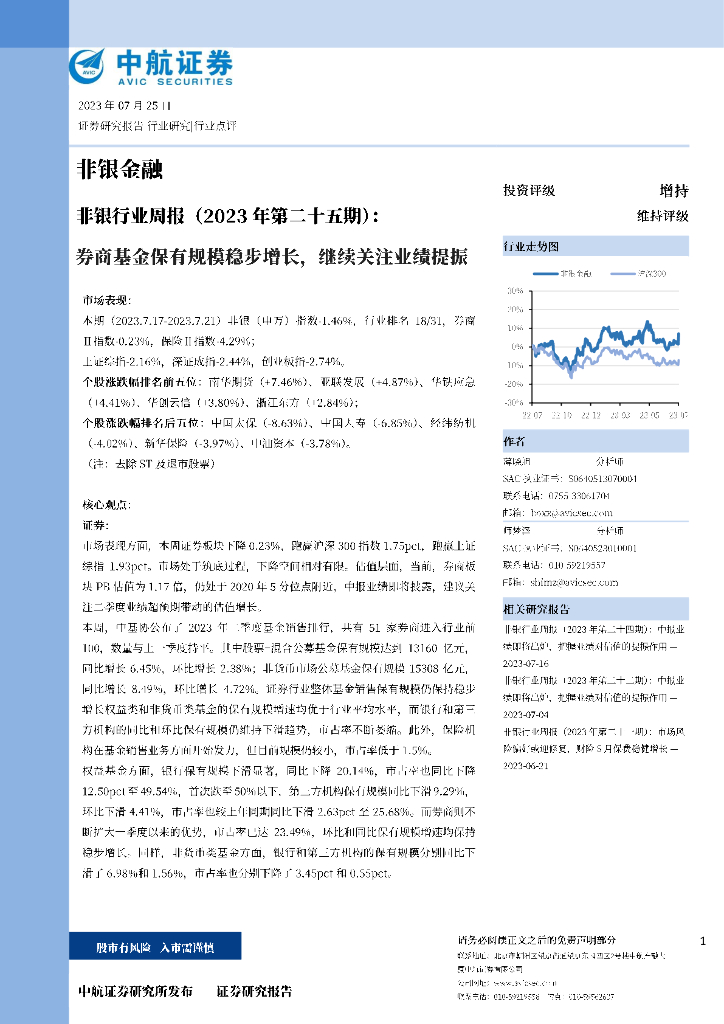 中航证券:非银行业周报(2023年第二十五期):券商基金保有规模稳步增长,继续关注业绩提振.pdf