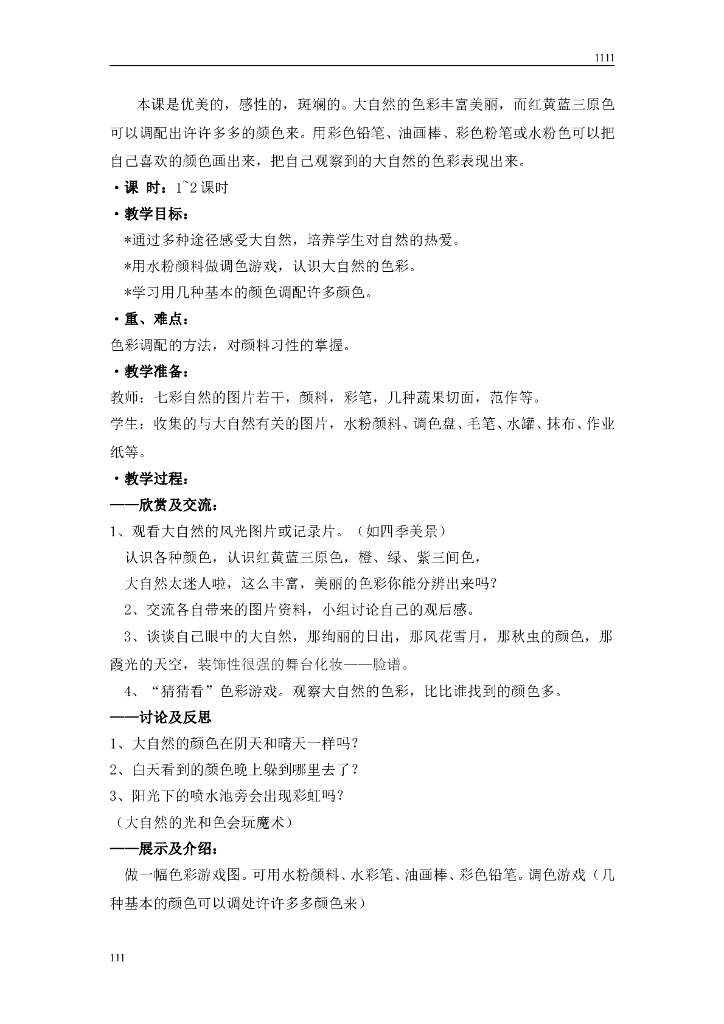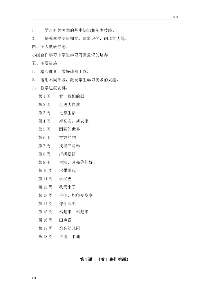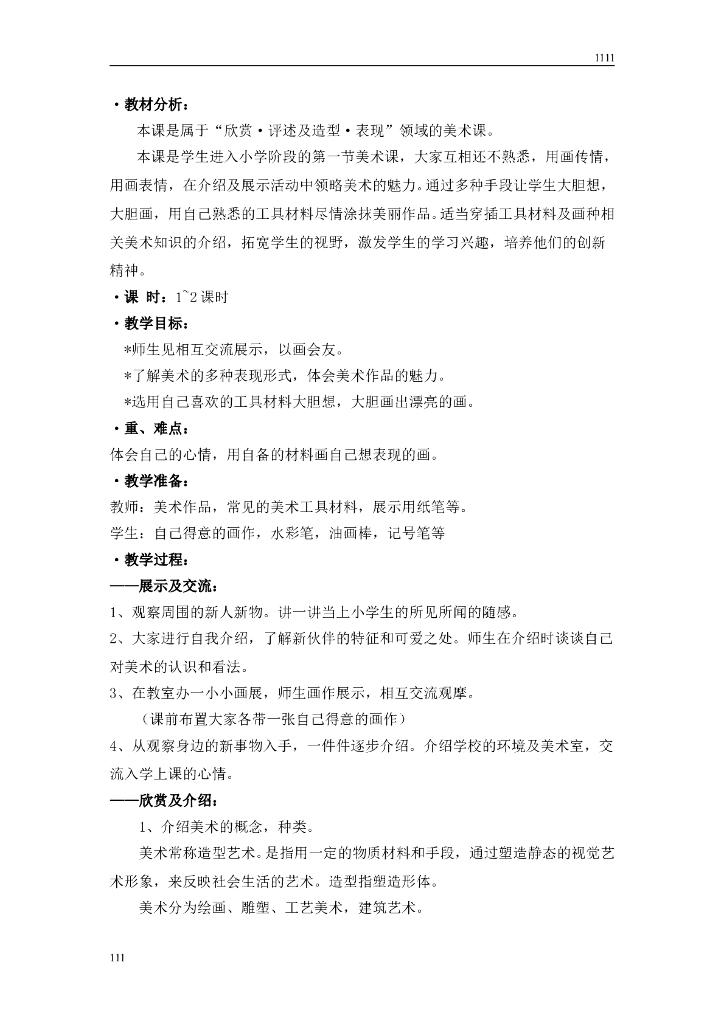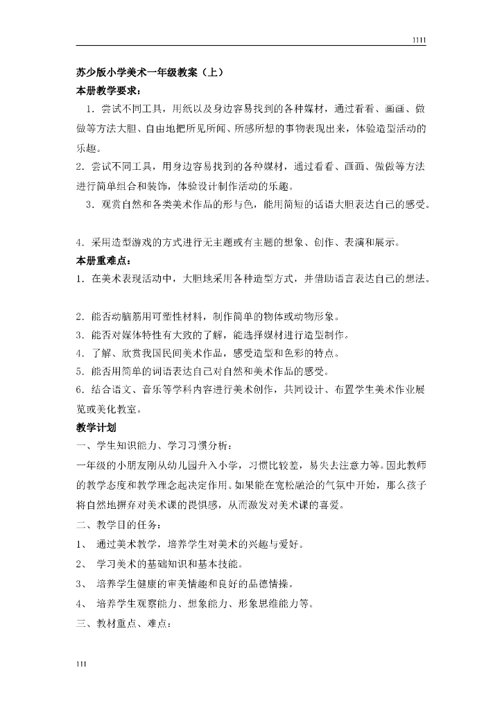 苏少版小学美术一年级上册全册教案教学计划.doc