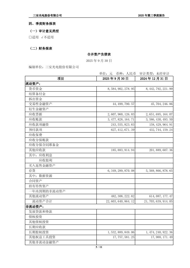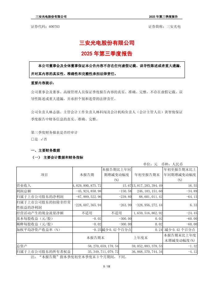 600703-三安光电:三安光电股份有限公司2025年第三季度报告.pdf