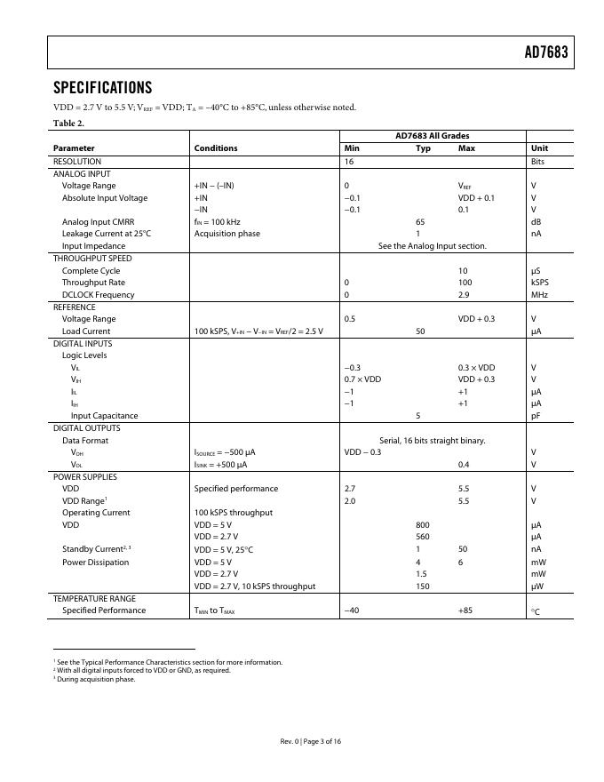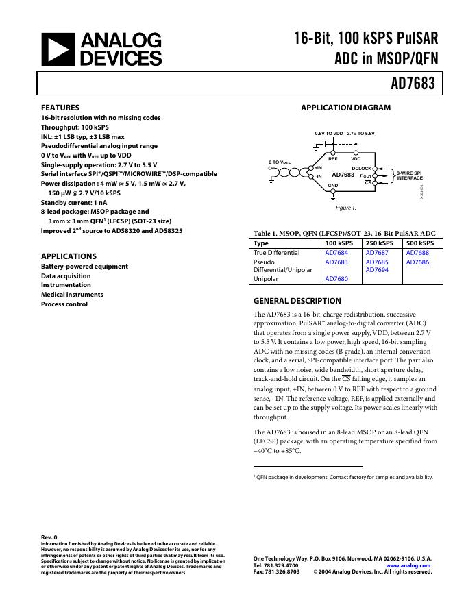 ANALOG DEVICES 16-Bit, 100 kSPS PulSAR ADC in MSOP/QFN AD7683 数据手册.pdf