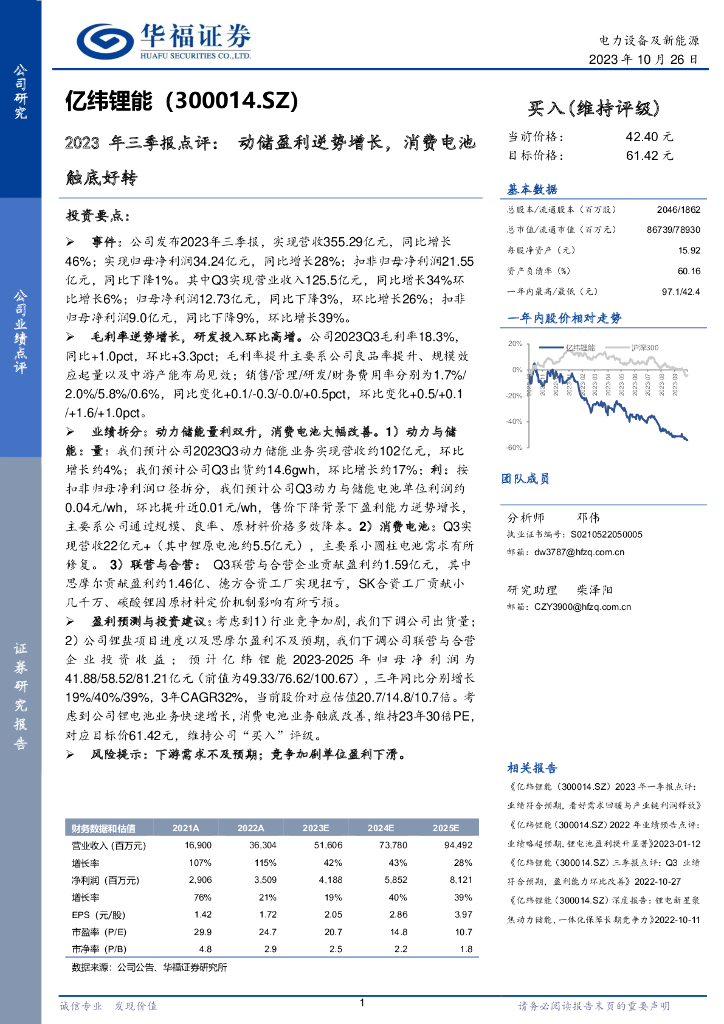 华福证券:亿纬锂能(300014)-2023年三季报点评:动储盈利逆势增长,消费电池触底好转.pdf