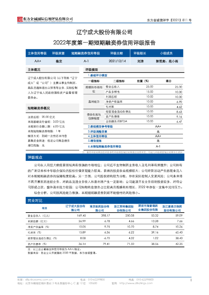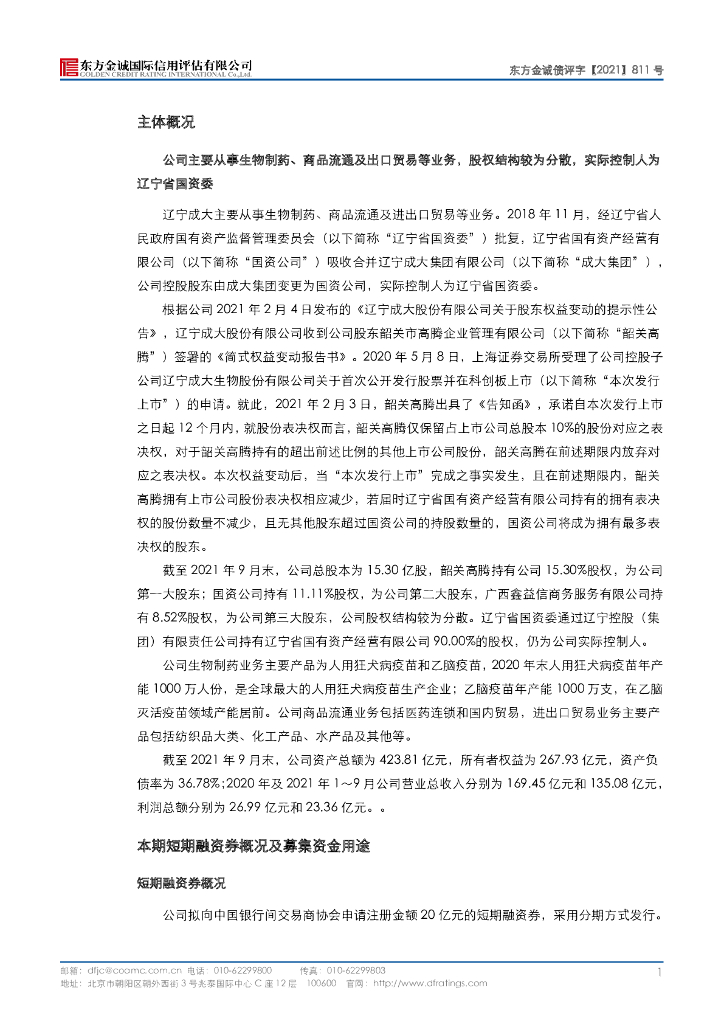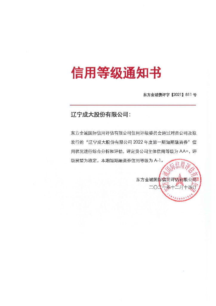 东方金诚:辽宁成大股份有限公司2022年度第一期短期融资券信用评级报告.pdf