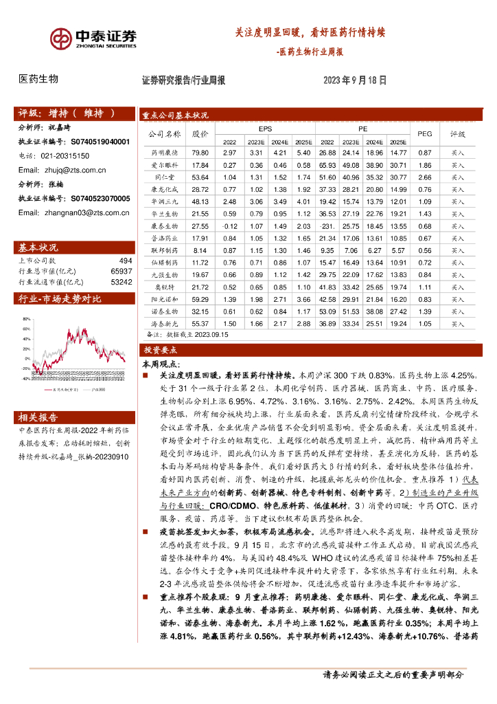 中泰证券:医药生物行业周报:关注度明显回暖,看好医药行情持续.pdf