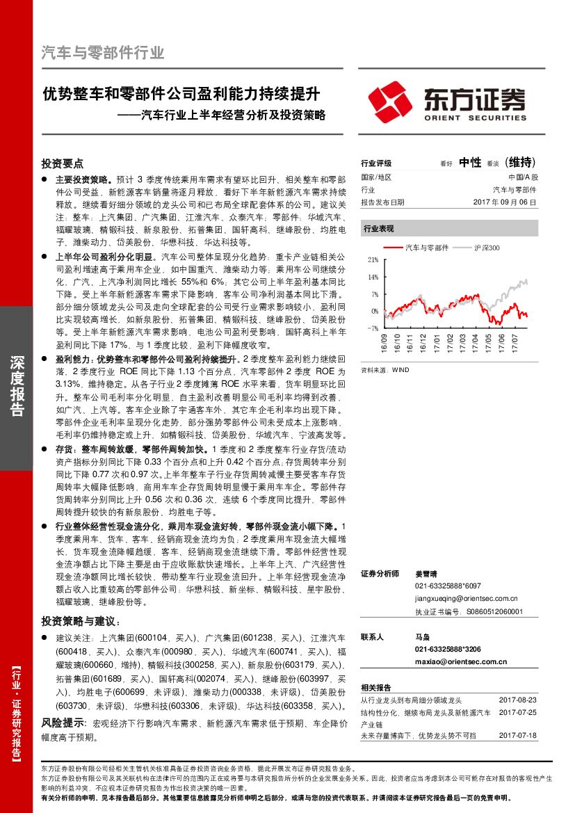 东方证券:汽车行业上半年经营分析及投资策略:优势整车和零部件公司盈利能力持续提升.pdf