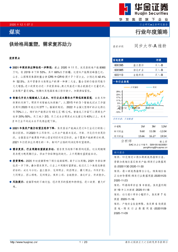 华金证券:煤炭行业年度策略:供给格局重塑,需求复苏助力.pdf
