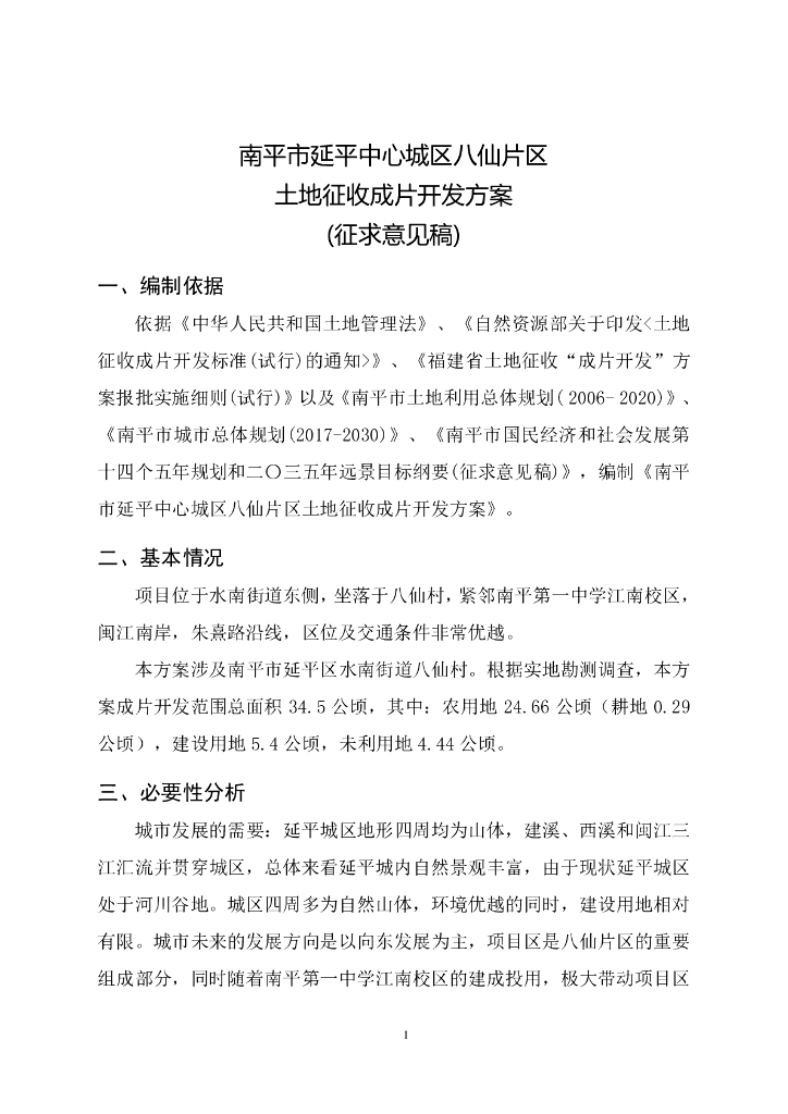 南平市延平中心城区八仙片区土地征收成片开发方案(征求意见稿).pdf