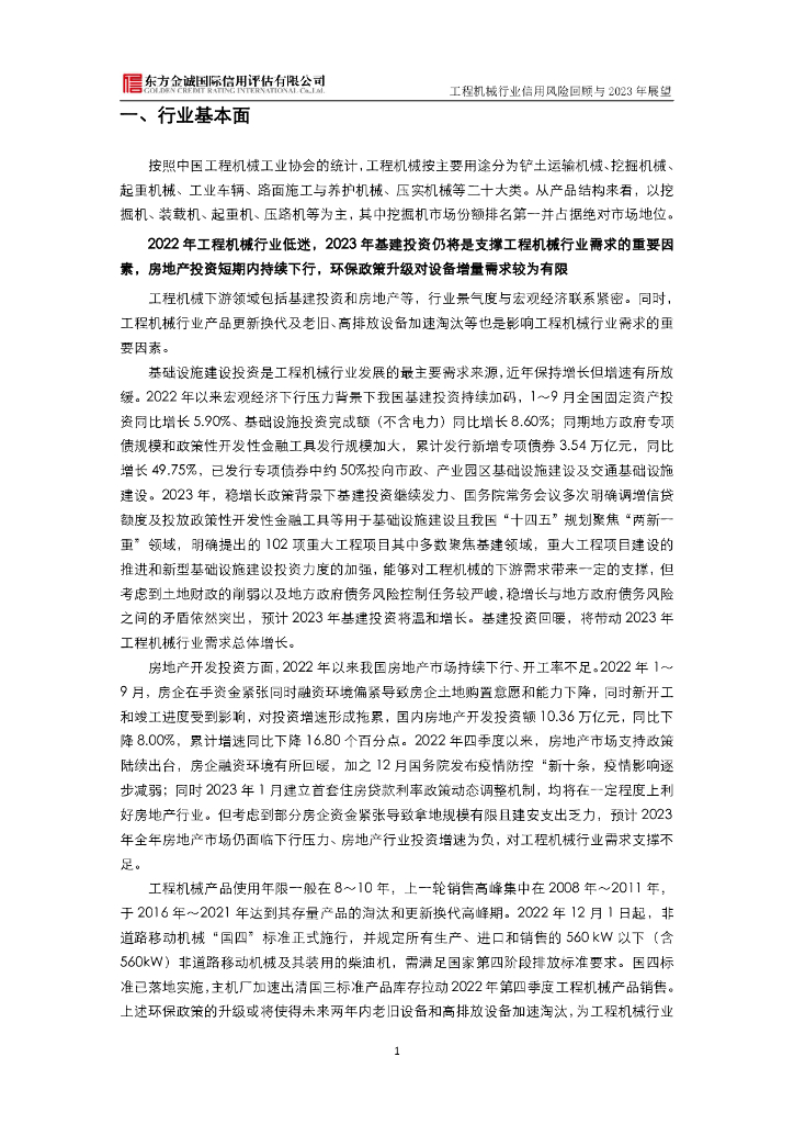 东方金诚:展望系列-工程机械行业信用风险回顾与2023年展望.pdf