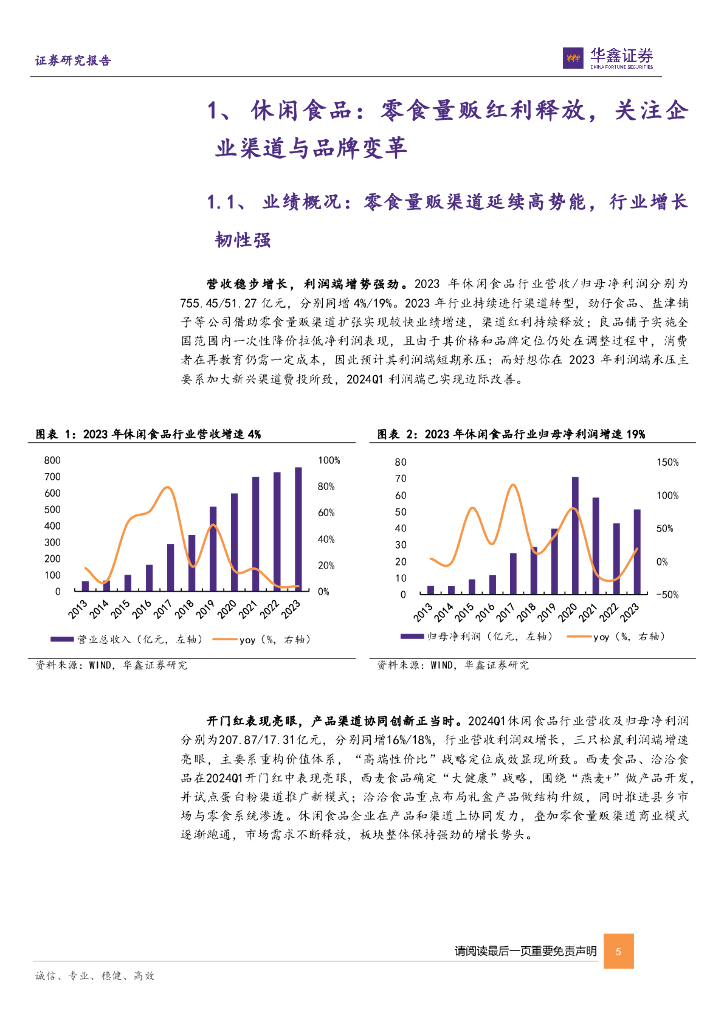 华鑫证券:休闲食品板块2023年及2024Q1总结:渠道转型红利释放,盈利端增长可期.pdf