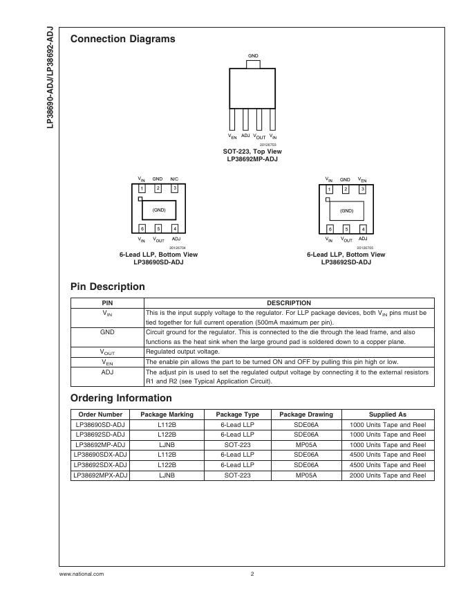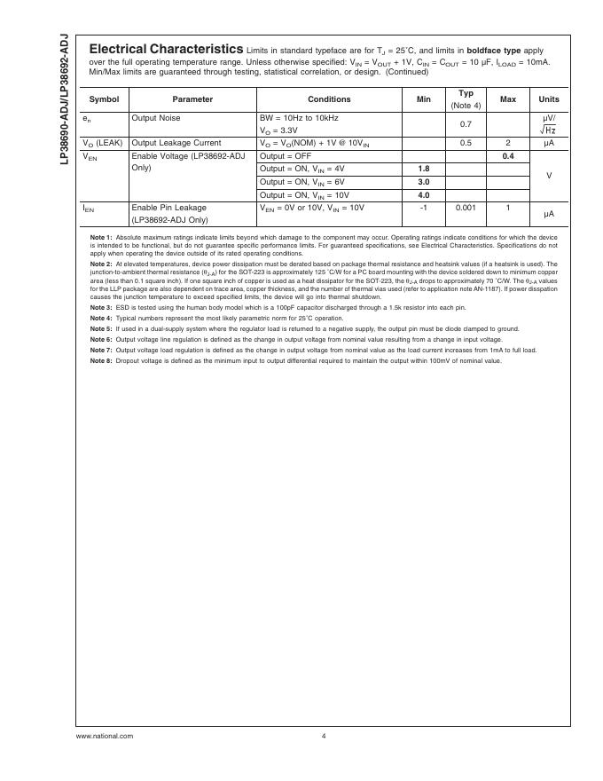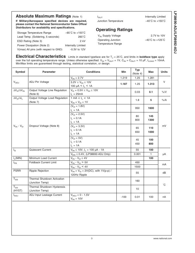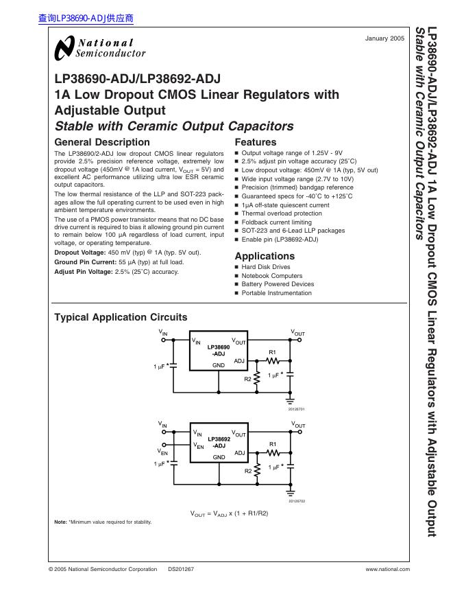 National semiconductor LP38690-ADJ/LP38692-ADJ 1A Low Dropout CMOS Linear Regulators with Adjustable Output Stable with Ceramic Output Capacitors 数据手册.pdf