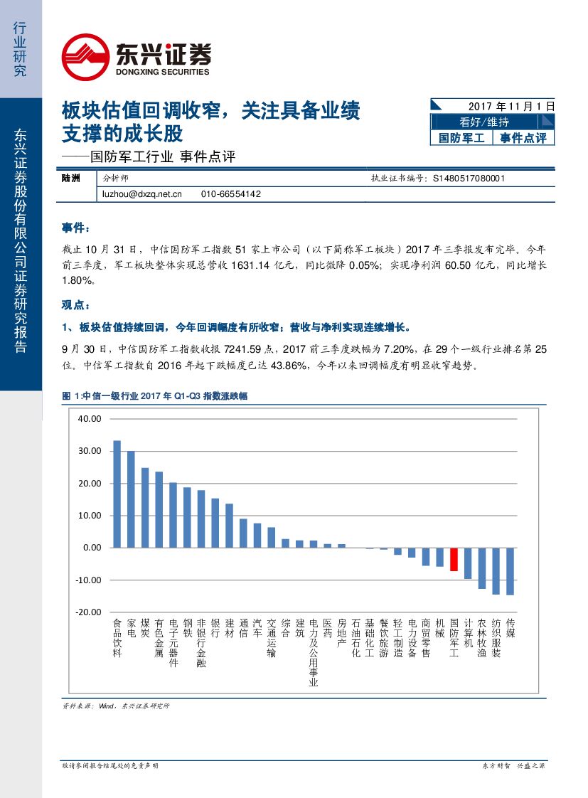 东兴证券:国防军工行业事件点评:板块估值回调收窄,关注具备业绩支撑的成长股.pdf