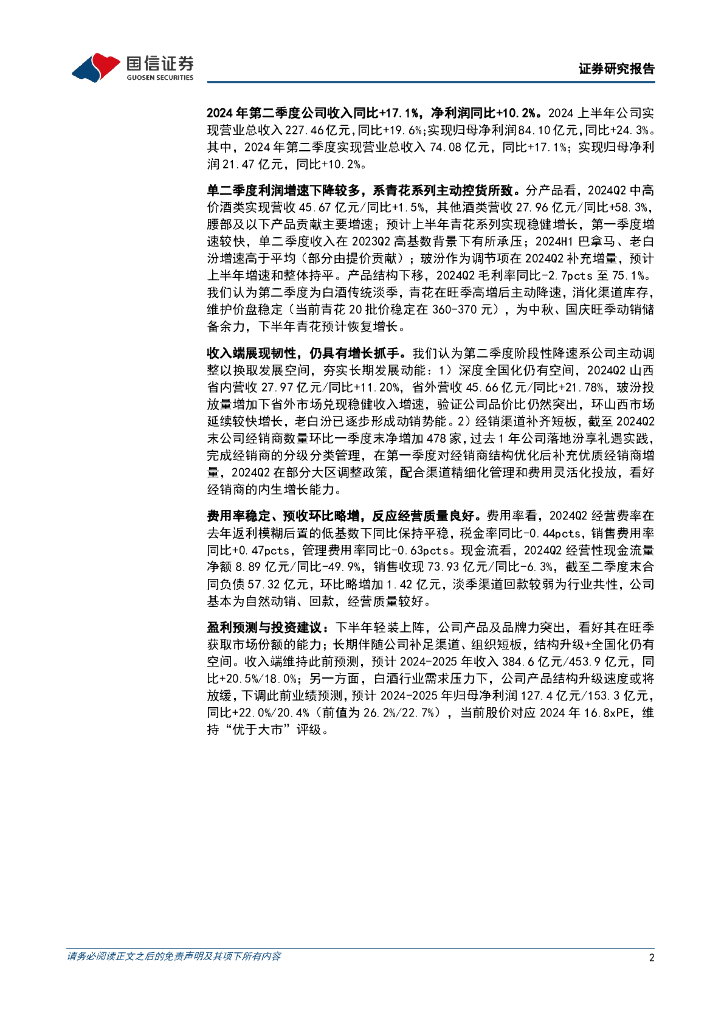 国信证券:山西汾酒(600809)-第二季度归母净利润同比增长10%,青花系列主动控速.pdf