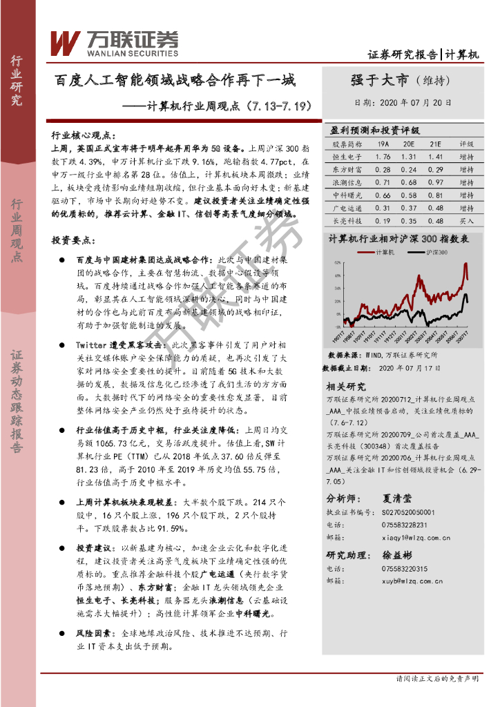 万联证券:计算机行业周观点:百度人工智能领域战略合作再下一城.pdf