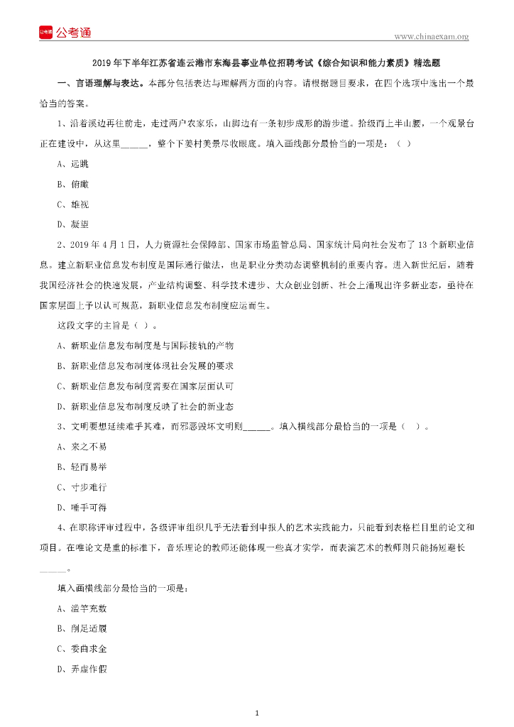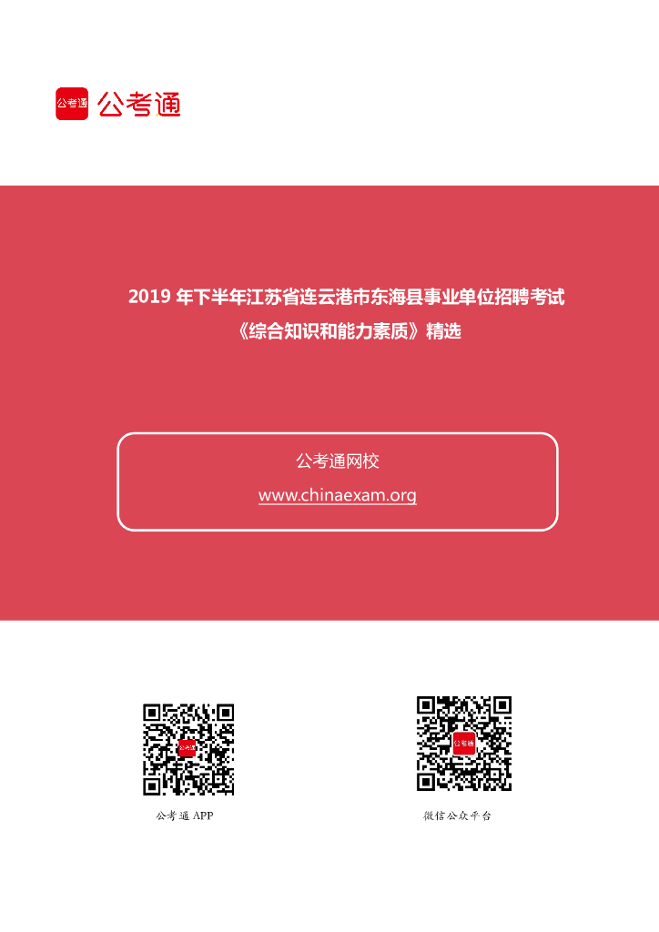 2019下半年江苏连云港东海县事业单位考试《综合知识和能力素质》精选题.pdf