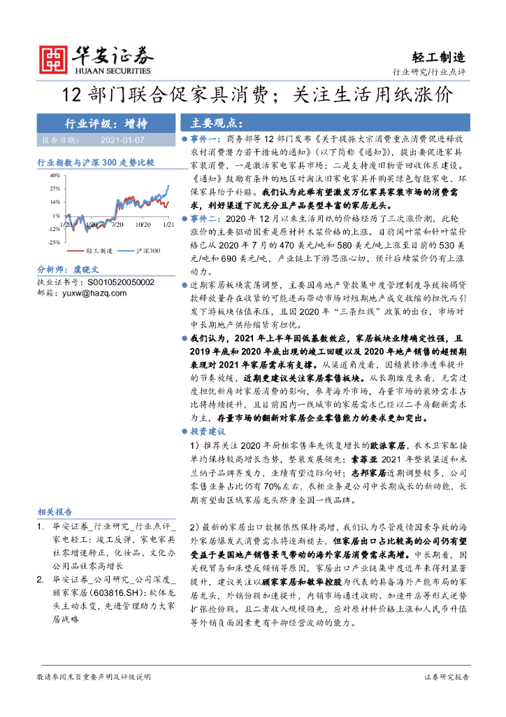 华安证券:轻工制造行业:12部门联合促家具消费;关注生活用纸涨价.pdf
