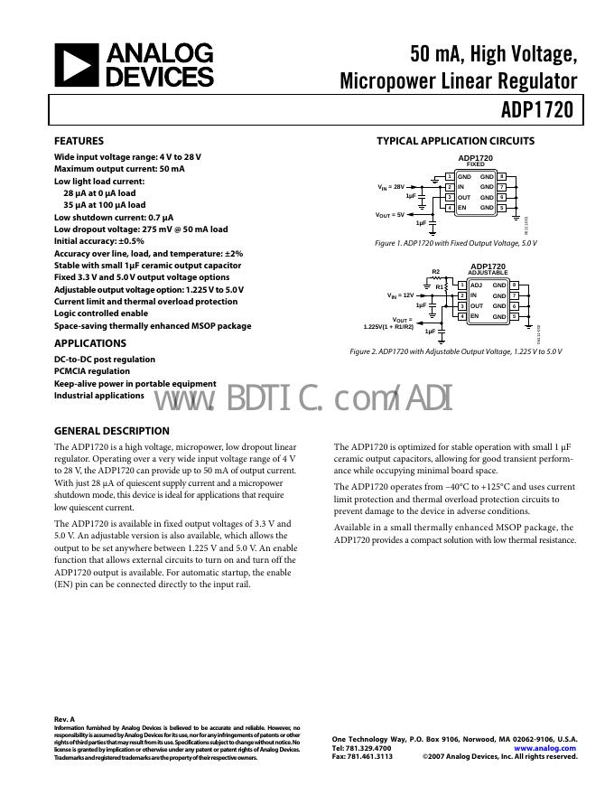 ANALOG DEVICES ADP1720 数据手册.pdf