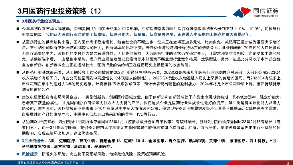 国信证券:医药生物行业2024年3月投资策略:重视医疗刚需属性,关注一季报高增长标的.pdf
