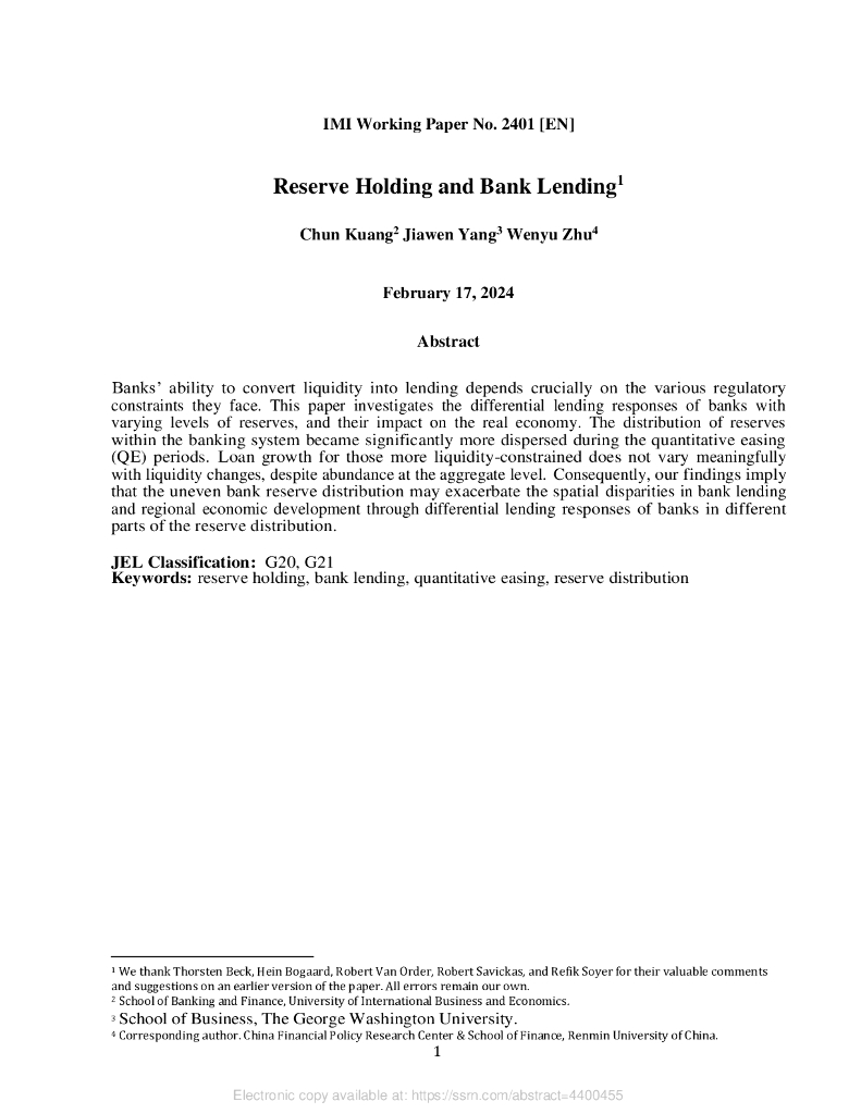 国际货币网:【IMI Working Paper No. 2401 [EN]】储备持有和银行贷款报告(英文版).pdf