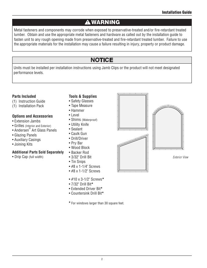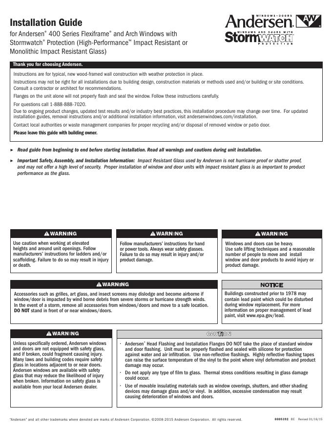 Andersen® 400 系列 Flexiframe® 和 Arch Windows with Stormwatch® Protection 安装指南.pdf
