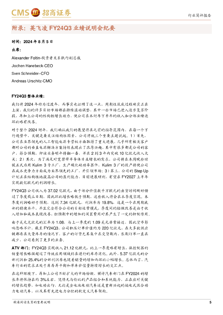 招商证券:电子行业英飞凌FY24Q3跟踪报告:下游需求分化现状持续,AI电源营收未来望超10亿欧元.pdf