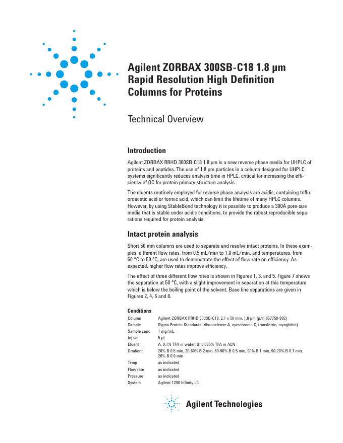 Agilent Technologies ZORBAX 300SB-C18 1.8μm Rapid Resolution High Definition Columns for Proteins 技术手册.pdf
